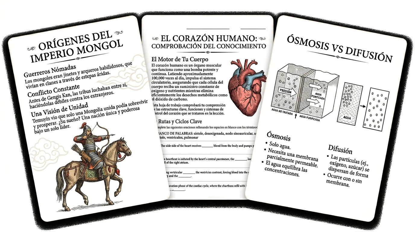 Crea guías de estudio y talleres que cautiven. Material listo para descargar e imprimir con un clic.
